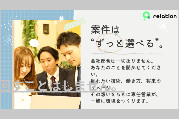 あなたの希望やスキルに合ったプロジェクトを選べる環境です。